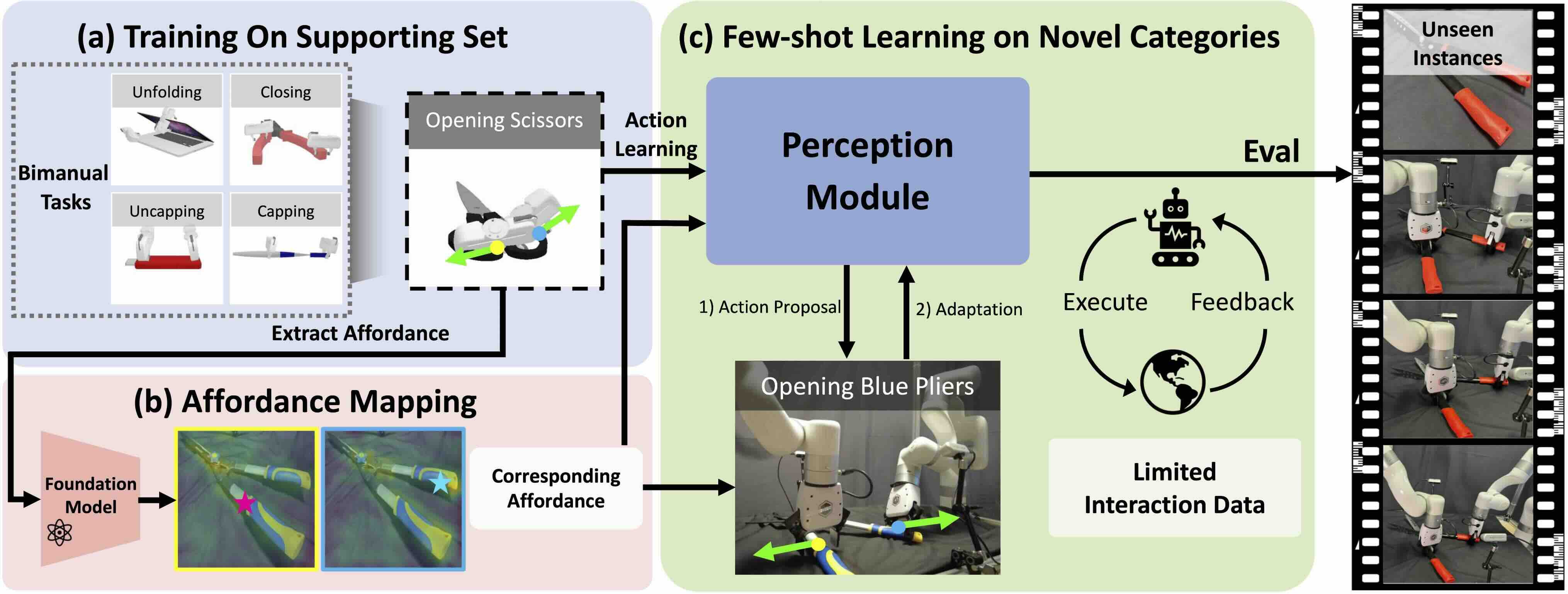 ![]() | Bi-Adapt: Few-shot Bimanual Adaptaion for Novel Categories of 3D Objects via Semantic CorrespondenceJinxian Zhou*, Ruihai Wu*, Yiwei Liu, Yiwen Hou, Xunzhe Zhou, Checheng Yu, Licheng Zhong, Lin ShaoInternational Conference on Robotics & Automation(ICRA), 2026 Project Page / arXiv / Code Bi-Adapt is a diffusion-based framework for efficient and generalizable bimanual manipulation across novel object categories and complex tasks. |